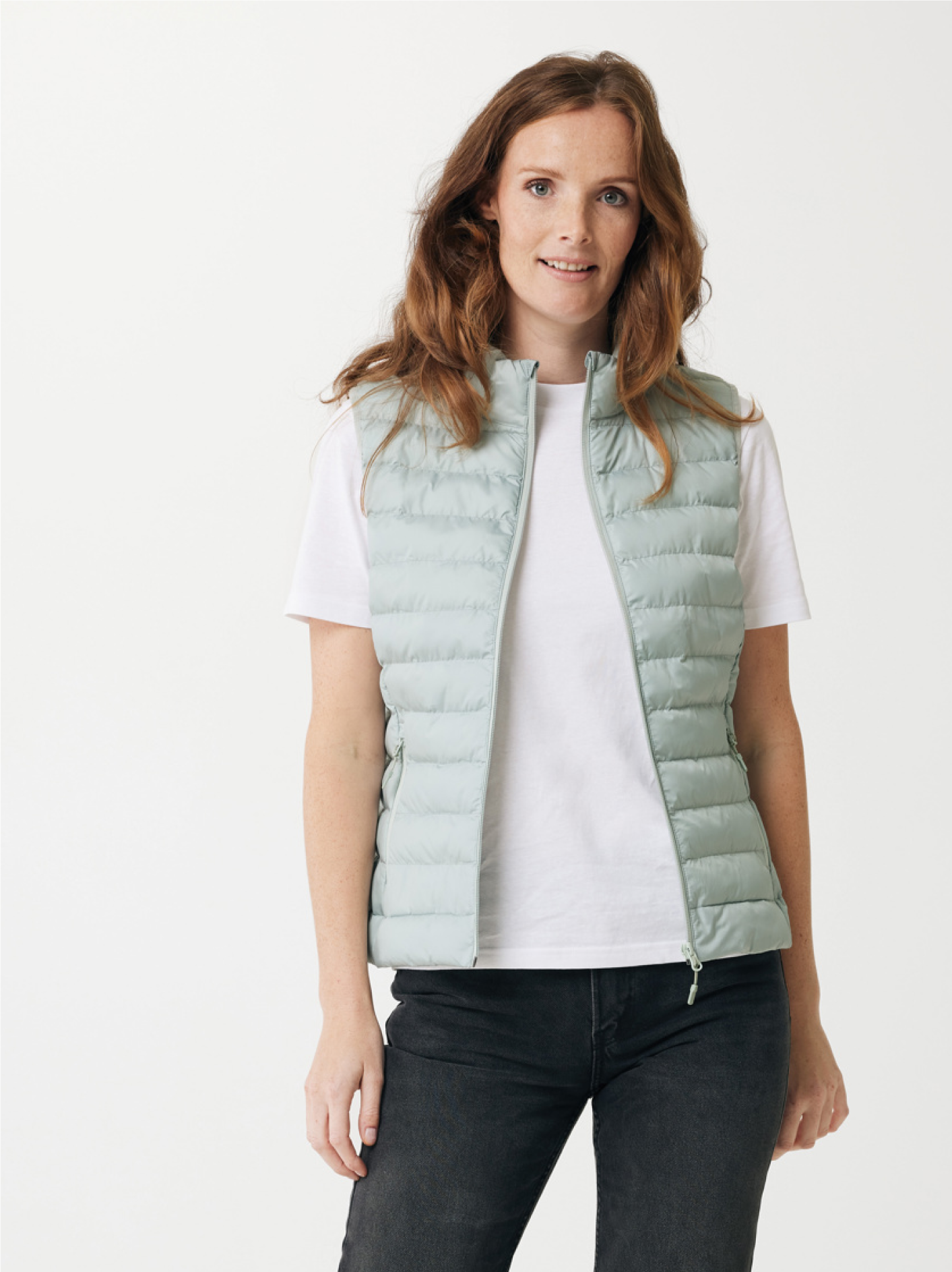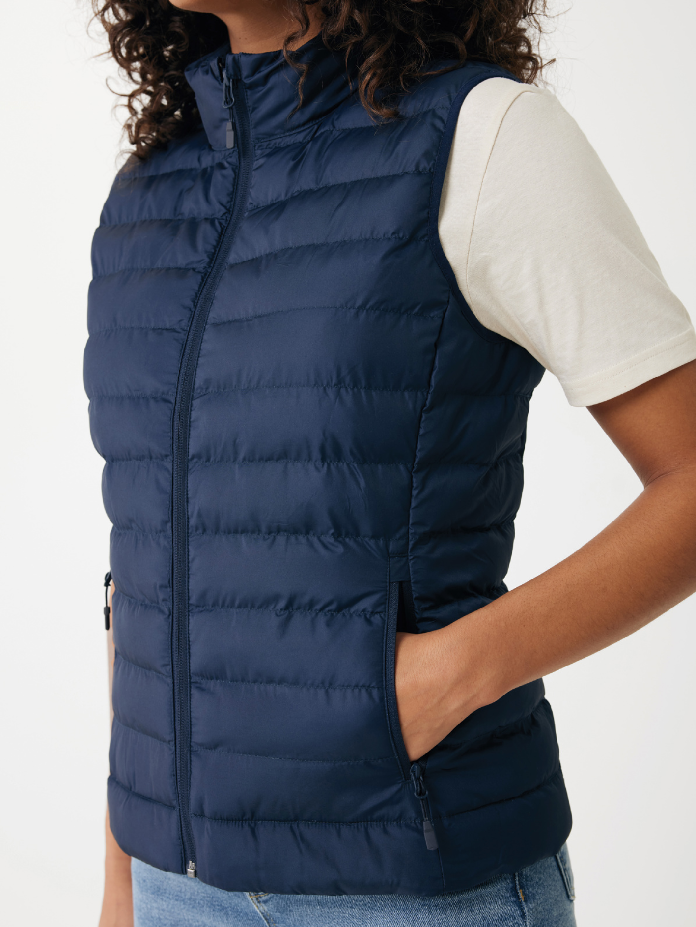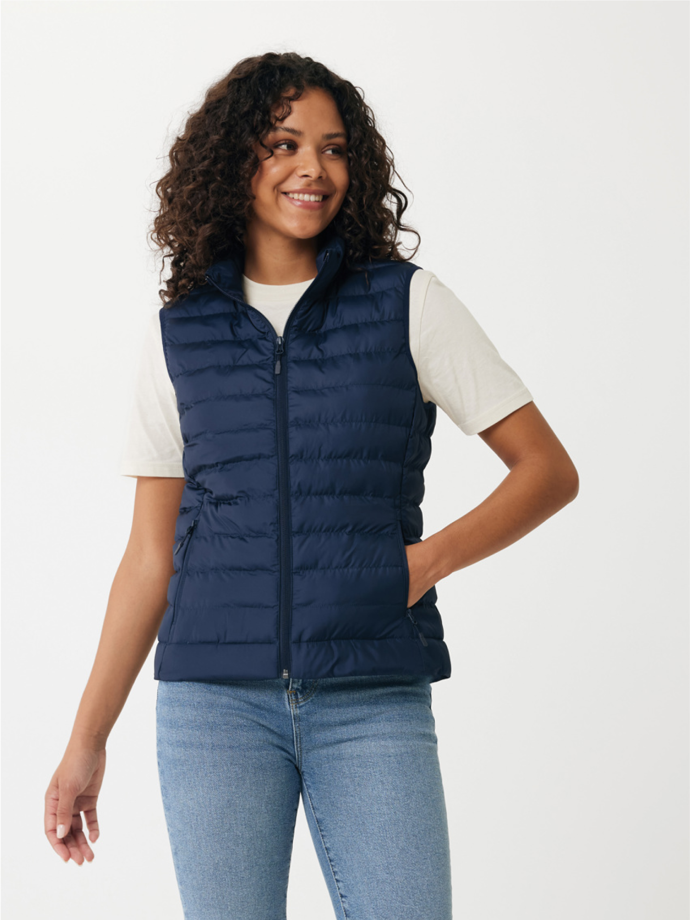 Dámská vesta vyrobená ze 100% recyklovaného polyesteru s plně prošívaným designem a náplní z recyklovaného polyesterového perlového vlákna. Tento model je vybaven otočným zipem, praktickými kapsami a elastickými okraji na průramkách. Fluorine/PFAS-free vodoodpudivá impregnace a garantovaná udržitelnost díky AWARE™ traceru a technologii blockchain.