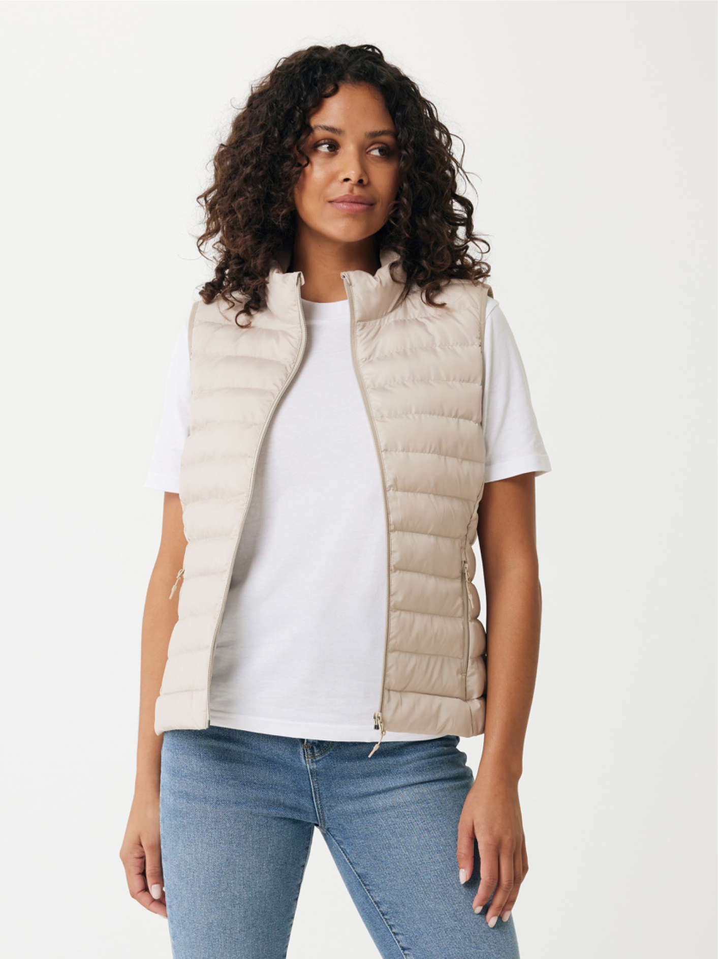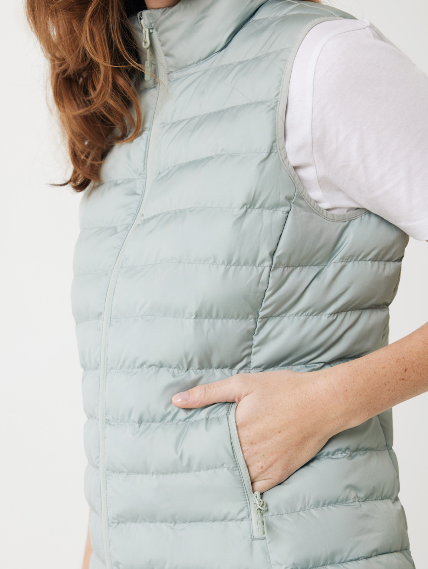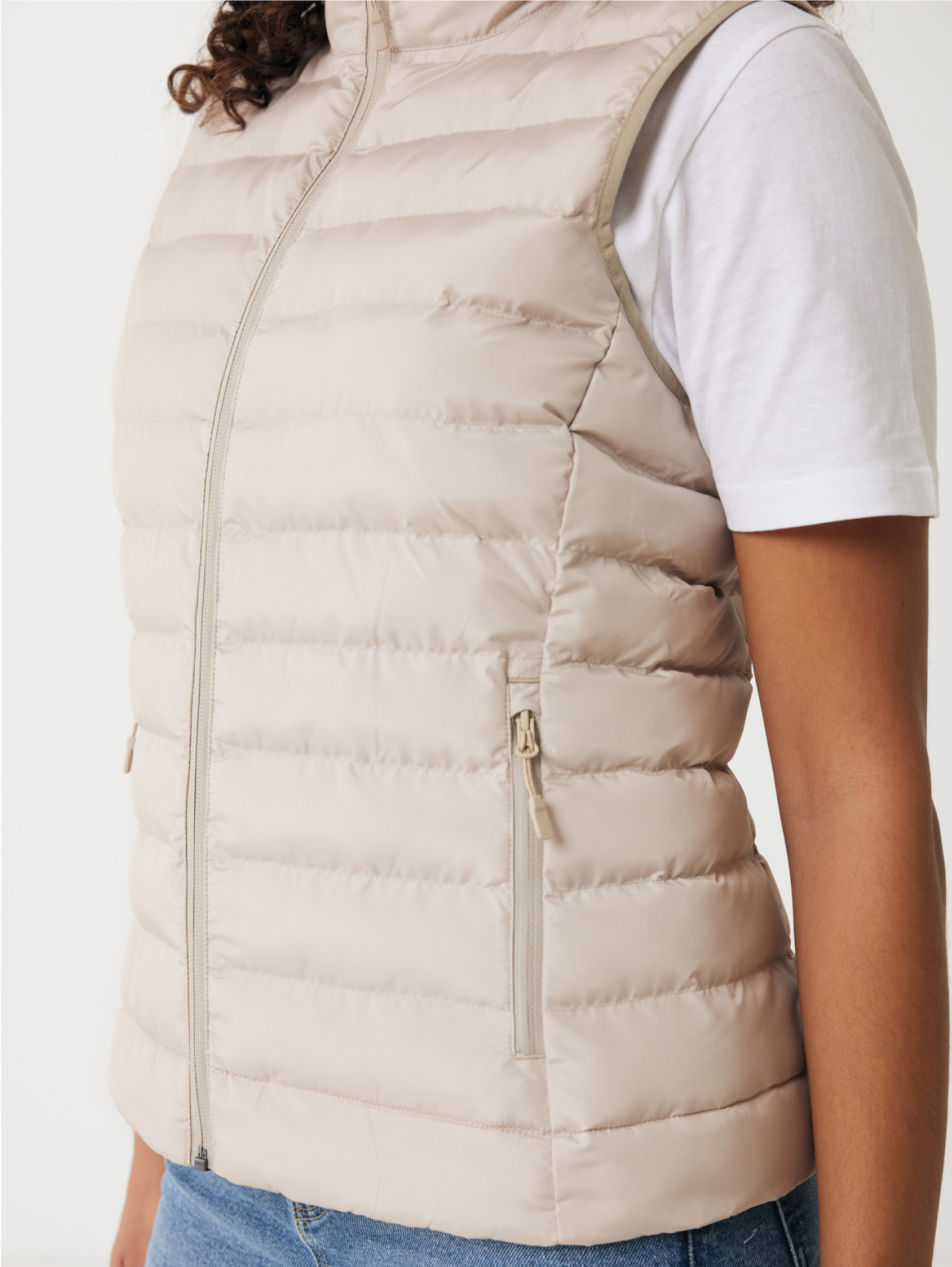 Dámská vesta vyrobená ze 100% recyklovaného polyesteru s plně prošívaným designem a náplní z recyklovaného polyesterového perlového vlákna. Tento model je vybaven otočným zipem, praktickými kapsami a elastickými okraji na průramkách. Fluorine/PFAS-free vodoodpudivá impregnace a garantovaná udržitelnost díky AWARE™ traceru a technologii blockchain.